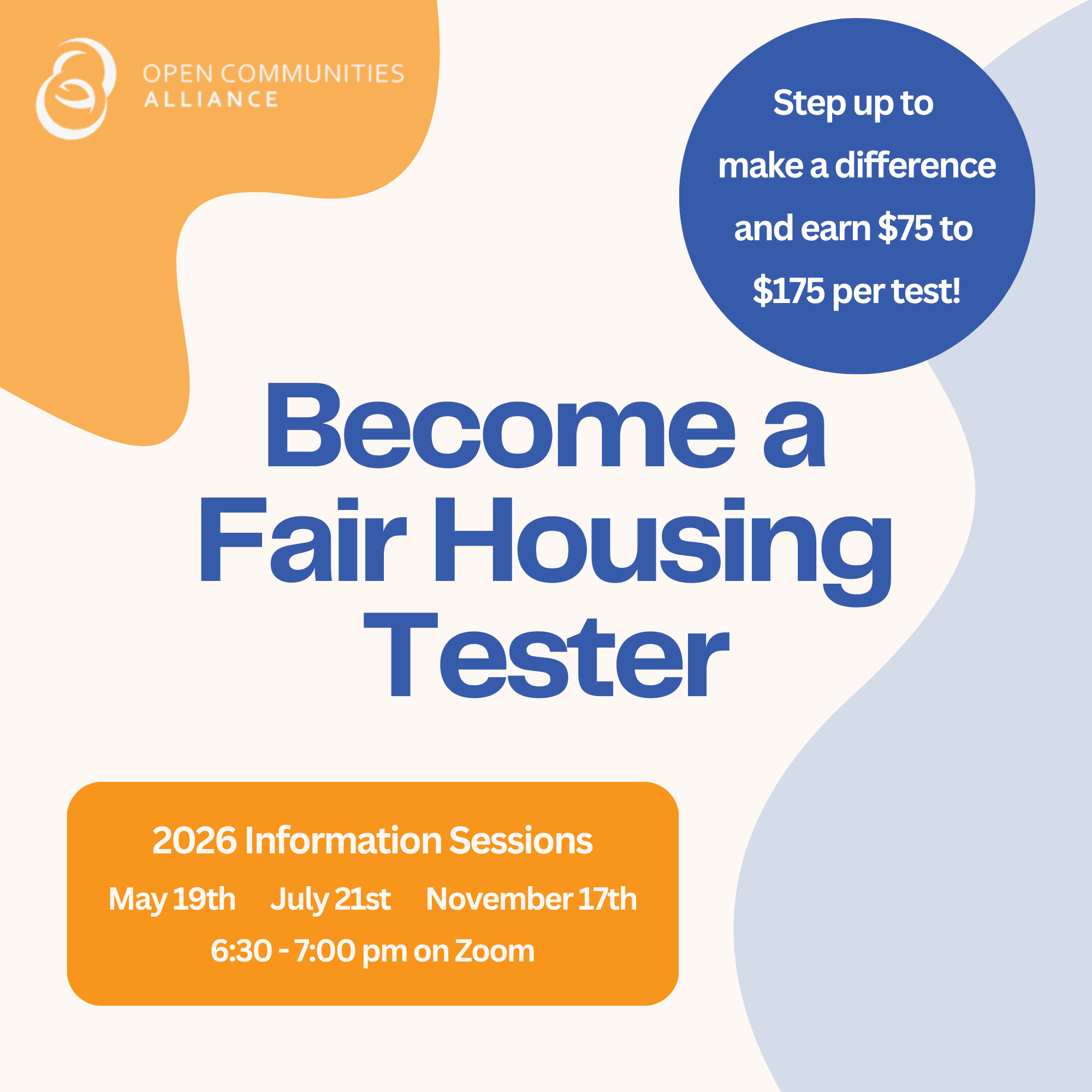 OCA is looking for fair housing testers, where we help ensure that fair housing laws are being followed in Connecticut. Our next information session will be held on May 19. Interested people can learn how to become a tester, what the work entails, and why it’s so important for our state. We’re looking for people who are dependable, impartial, able to work independently, and have a few hours of flexibility during business hours.